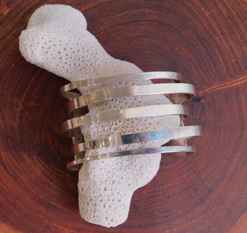 Gracias a su diseño refinado, el brazalete de plata se adapta a cualquier ocasión. Puede usarse solo para un look sobrio y elegante o combinarse con otras joyas para un estilo más elaborado. Es el complemento perfecto para cualquier atuendo, destacando por su equilibrio entre simplicidad y sofisticación.